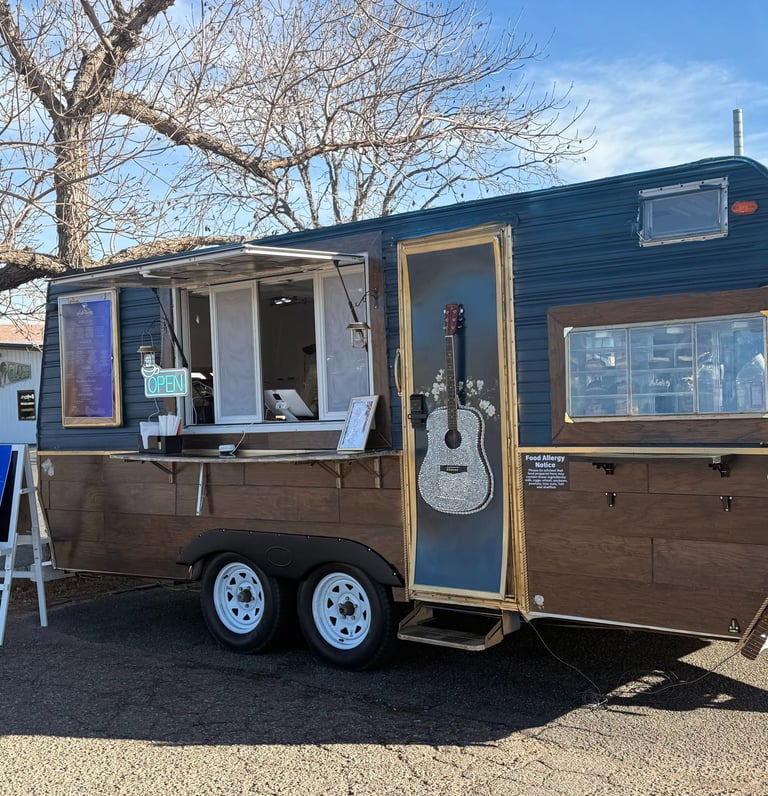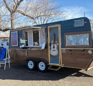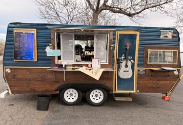 A vintage trailer serving rich espresso and creamy shakes with a soundtrack of classic tunes.